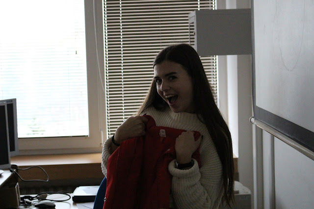 Ráno jsem musela vstávat brzy jako každý den. Sraz jsme měli v 8:30 před Kulturním domem REPRE, kde se měl náš ples konat. Vše probíhalo podle plánu. Dopoledne jsme připravovali sál, roznášeli letáčky a zdobili stoly. Trochu jsme „vylepšili“ ozdobu balkonového ochozu našimi ručně vyráběnými písmeny. Když bylo všechno přichystané, tak jsme se mohli odebrat domů a začít se připravovat na večer.